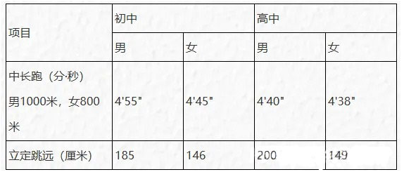 ④体能测试:立定跳远和中长跑,此项为合格性测试,不计入复试成绩,合格标准如下: