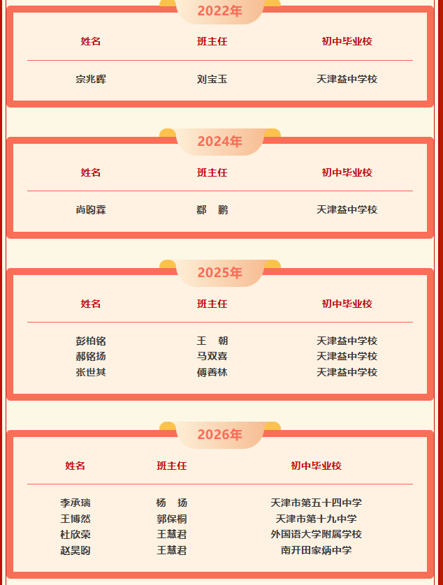 欣闻喜讯!在正陆续公布的北京大学2026年“数学英才班”入围名单中,天津市第一中学共有四位同学脱颖而出,成功入围。祝贺他们,愿他们在未名湖畔继续绽放才华!
