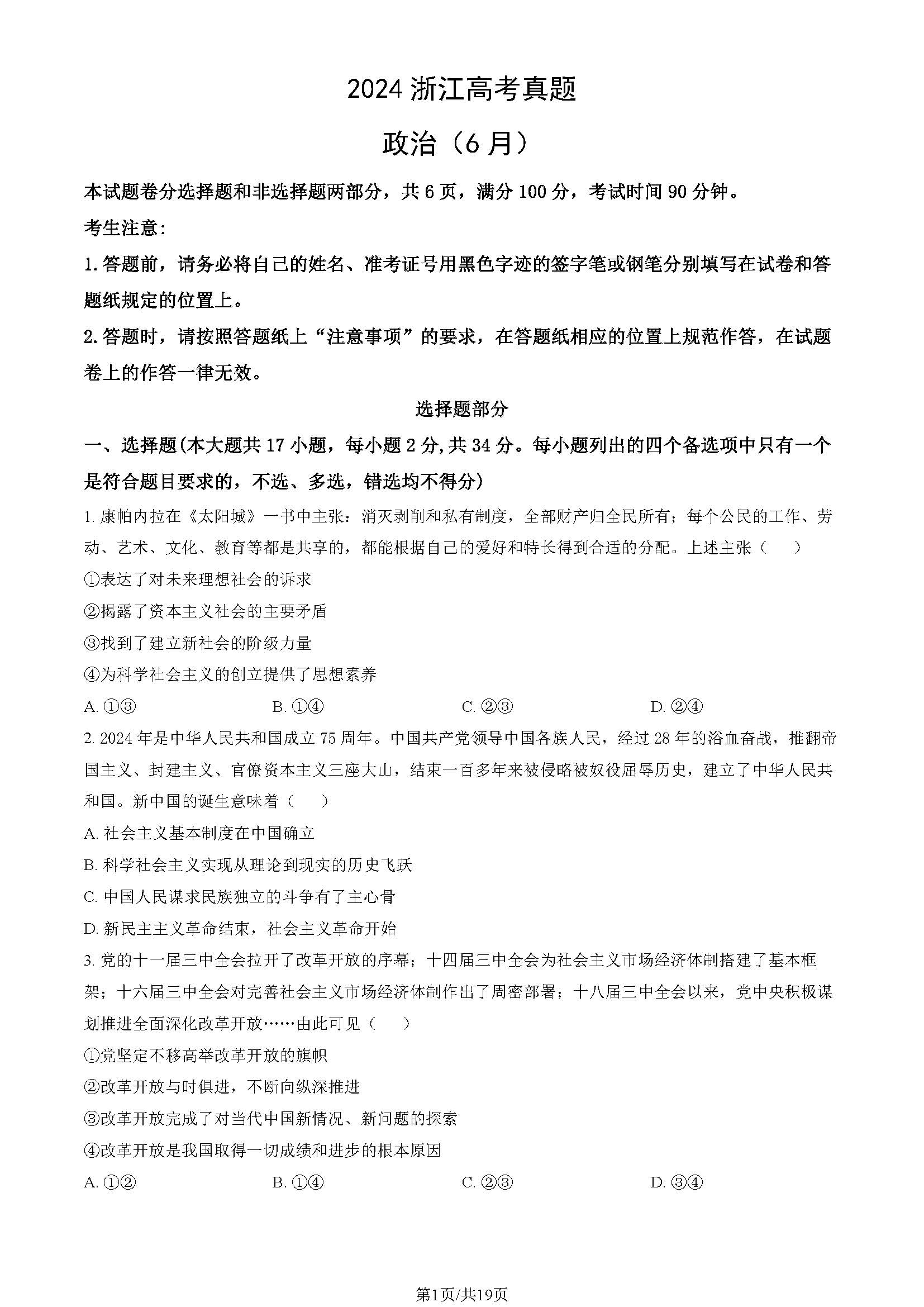 2024浙江高考已结束,为了方便同学们查找高考试题及答案,北京高考在线团队特意整理了政治试题及答案,分享给同学们。详情如下: