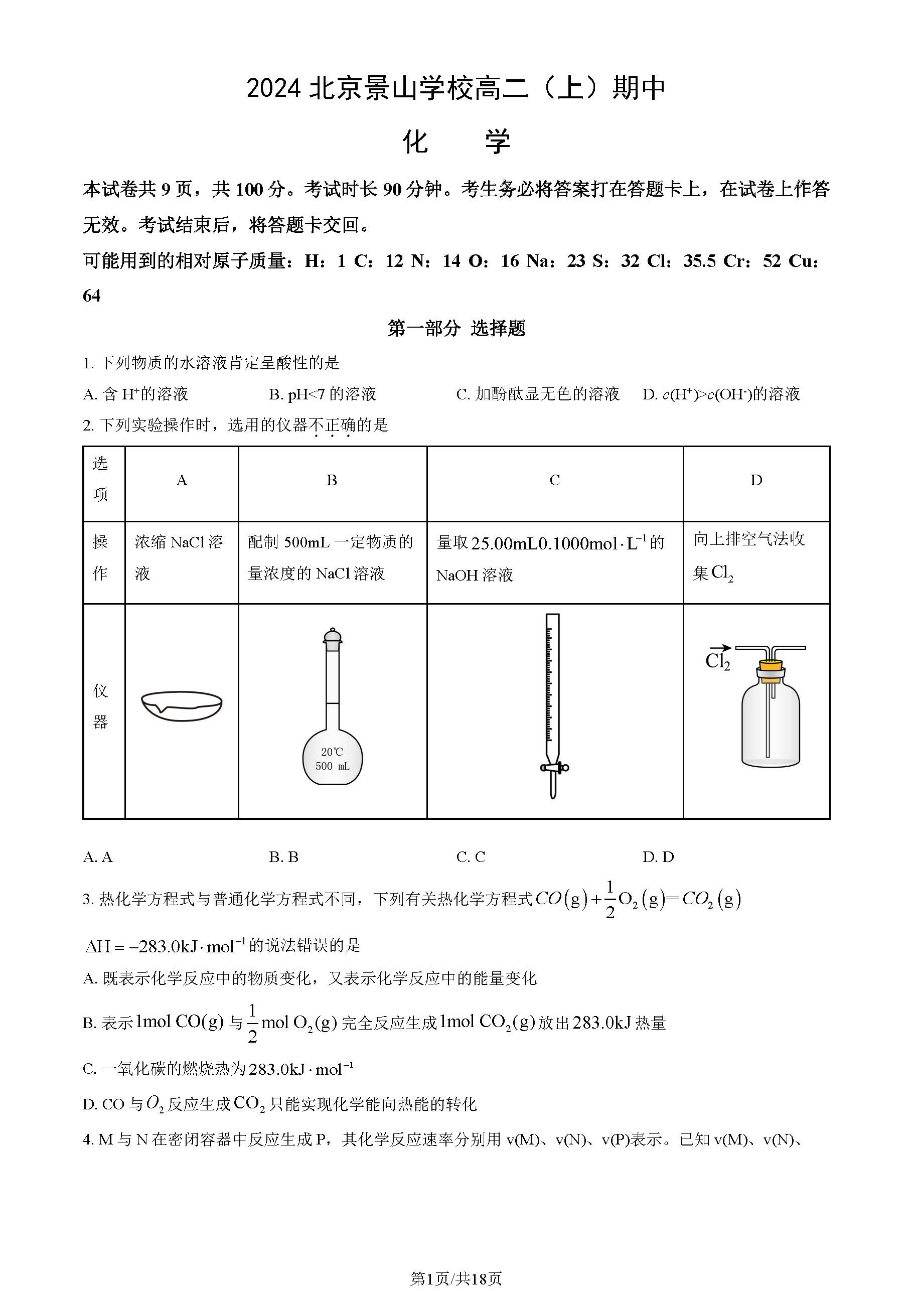 期中考试的试题及答案是考生的重要复习资料,目前高二期中考试进行中,北京高考在线团队整理了2024-2025学年北京景山学校高二期中化学试题及答案,供考生下载练习。