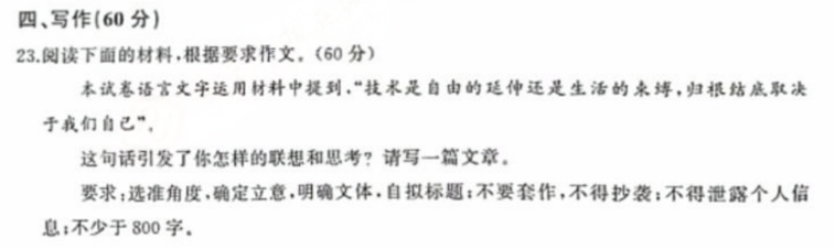 四、写作(60分)23.阅读下面的材料,根据要求作文。(60分)