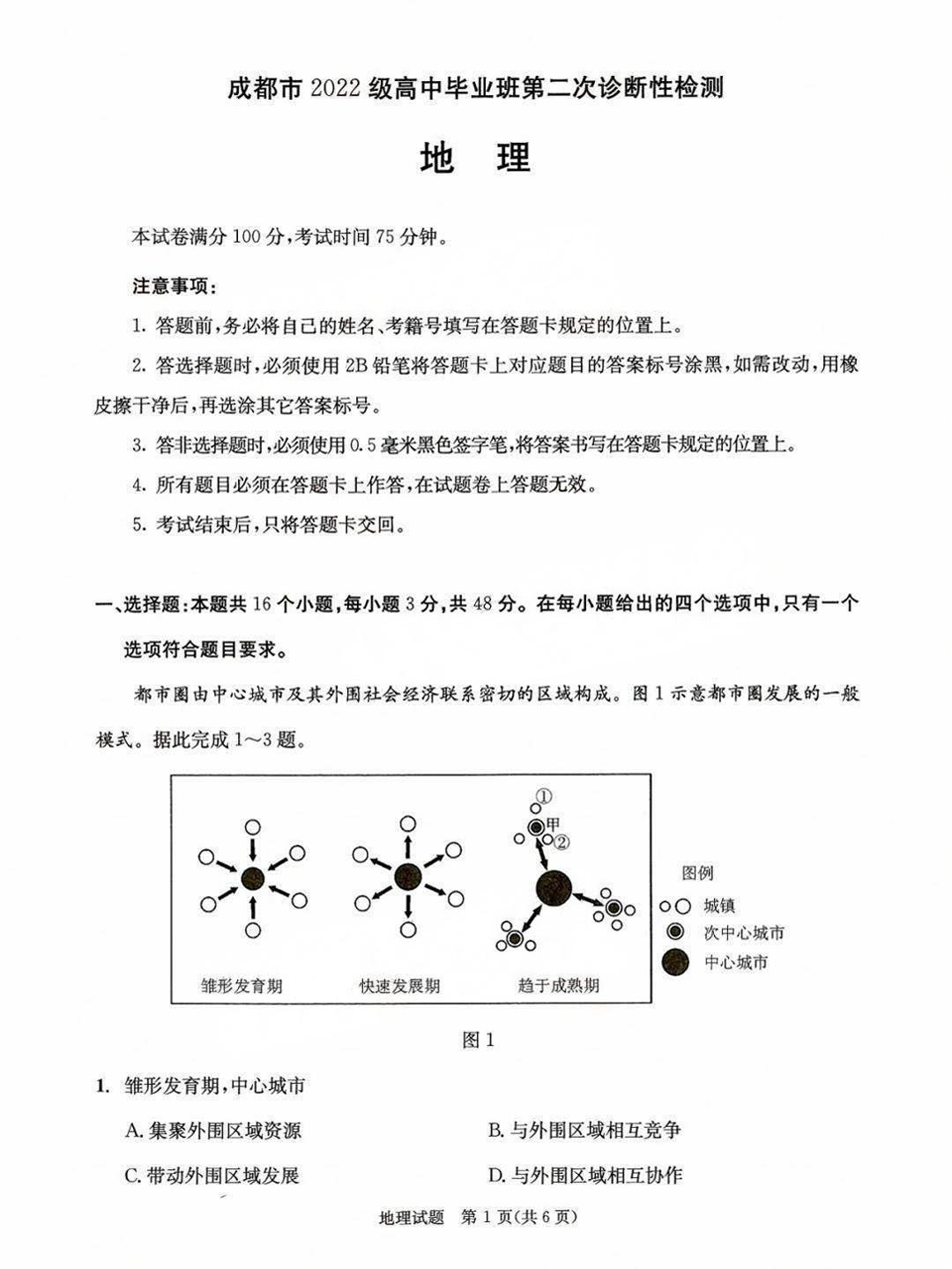 2025成都二诊地理试题及答案