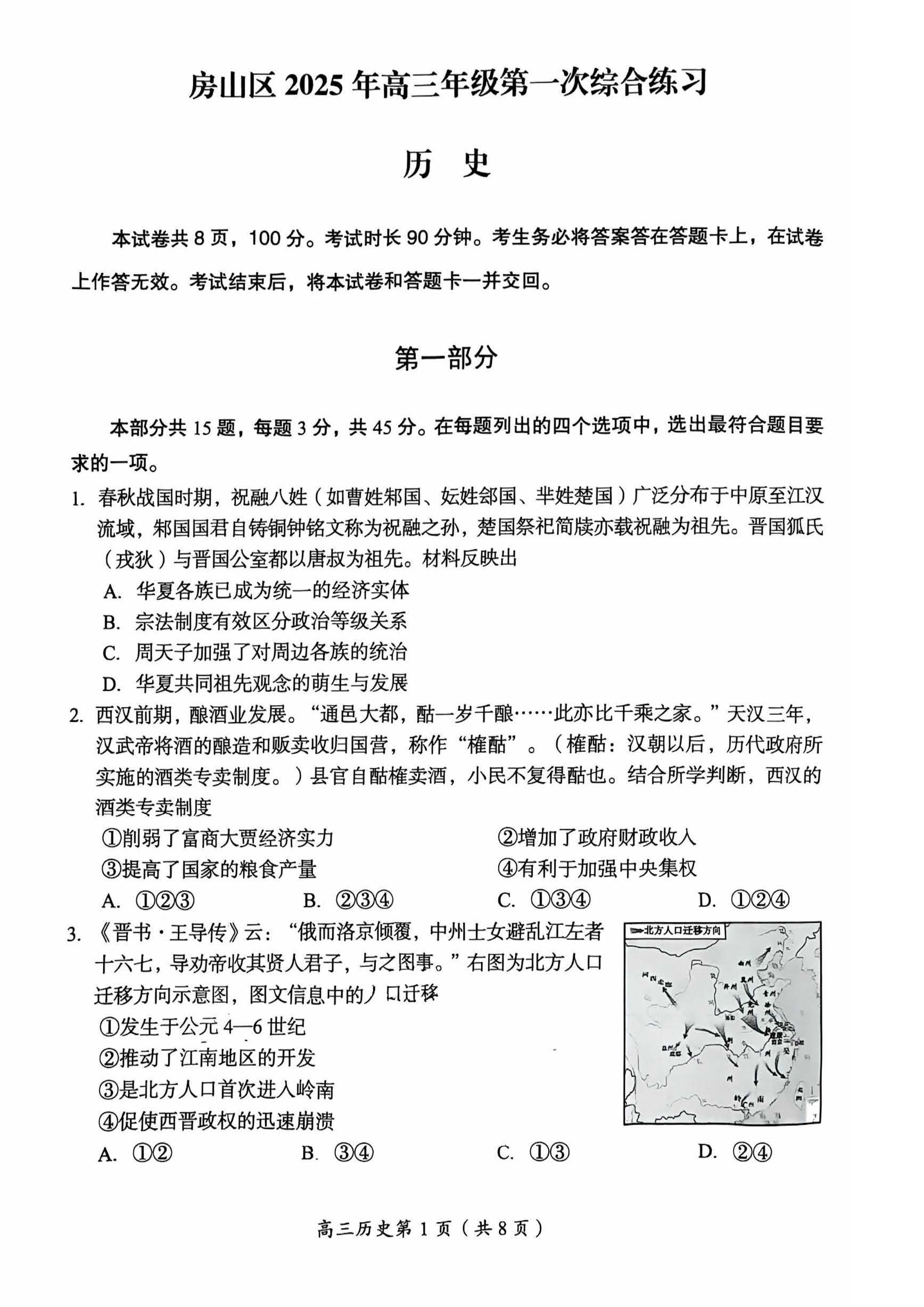 目前,北京房山区高三一模考试已结束,北京高考在线整理了2025北京房山区高三一模历史试题及答案,详情如下: