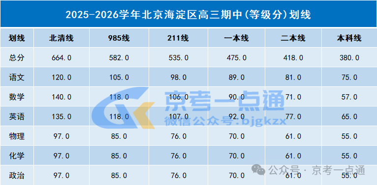 进入11月,北京各区初高中各年级陆续进行了期中考试,考试后会陆续公布各区的区排名、各科目分数情况等数据,北京高考在线团队整理了2025-2026学年北京海淀区高三期中成绩划线,详情如下: