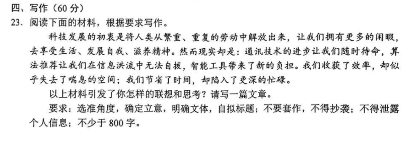 要求:选准角度,确定立意,明确文体,自拟标题;不要套作,不得抄袭;不得泄露个人信息;不少于800字。