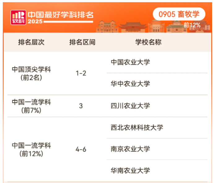 目前2025软科中国最好学科排名公布,排名榜单包括98个一级学科和5个专业学位类别,本文整理了农学排名前12%的高校,供考生参考。