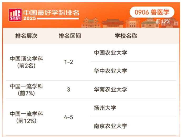 目前2025软科中国最好学科排名公布,排名榜单包括98个一级学科和5个专业学位类别,本文整理了农学排名前12%的高校,供考生参考。