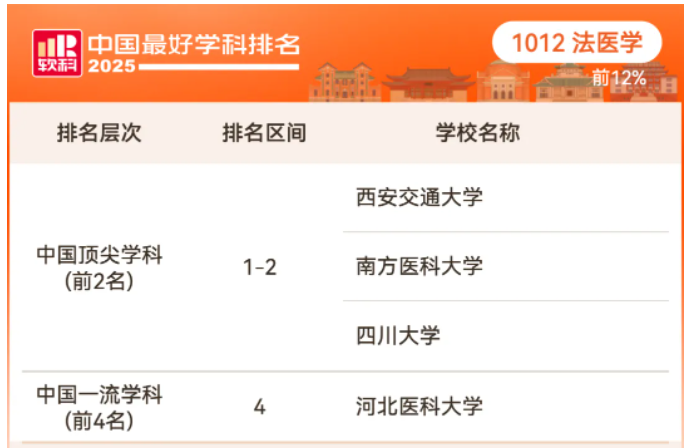 法医学排名前12%的高校: