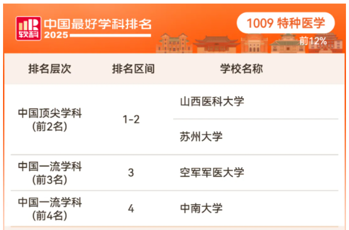 目前2025软科中国最好学科排名公布,排名榜单包括98个一级学科和5个专业学位类别,本文整理了医学排名前12%的高校,供考生参考。
