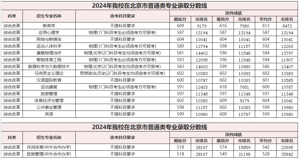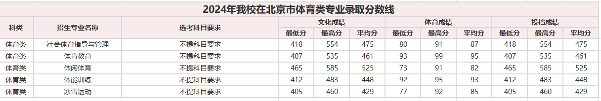 2024北京体育大学在京专业录取分数线