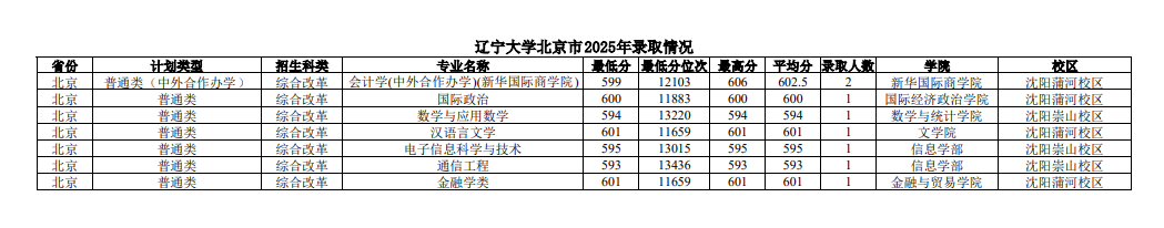 北京高考在线整理了辽宁大学2025年在京专业录取分数线,分享给同学们参考。