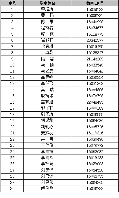 首都师范大学附属云岗中学2024年“1+3”培养实验录取工作已结束,现公布录取名单如下: