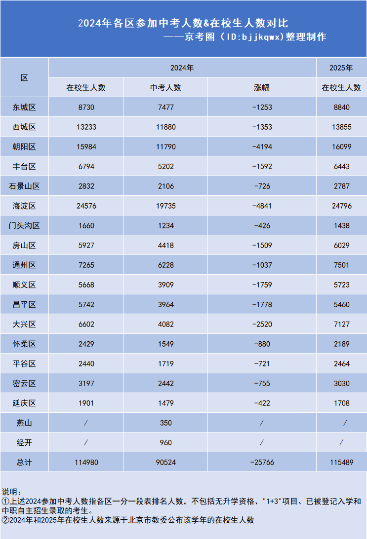 2025北京中考多少人能上公办普高?哪个区更容易上?