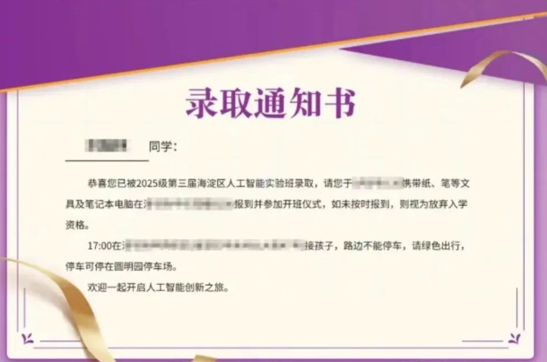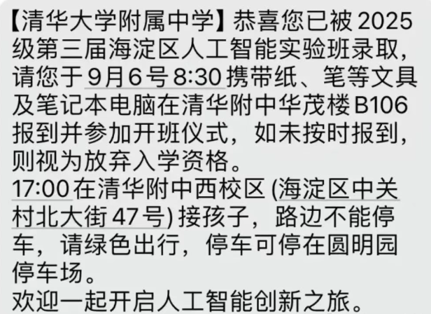 清华附中2025人工智能实验班录取确定,直升高中对应实验班