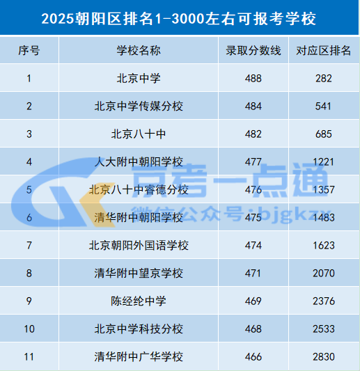 北京朝阳区中考排名1-3000可以选择哪些高中?北京高考在线团队整理了2026北京中考参考:北京朝阳区中考排名1-3000可以选择哪些高中,供大家参考学习。
