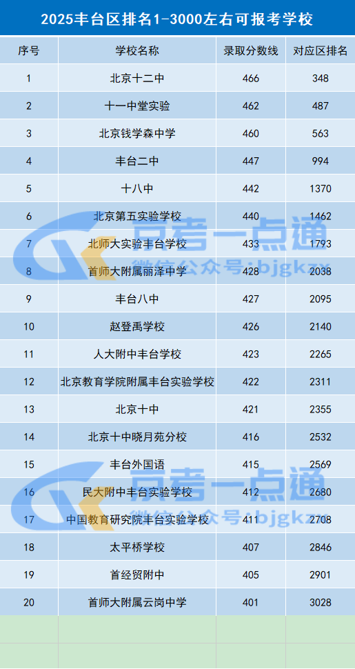 北京丰台区中考排名1-3000可以选择哪些高中?北京高考在线团队整理了2026北京中考参考:北京丰台区中考排名1-3000可以选择哪些高中,供大家参考学习。