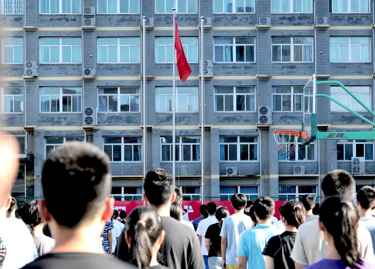 国歌响起,歌声嘹亮。冉冉升起的五星红旗与同学们激昂的歌声一起飘扬在空中,伴随着初秋的微风,点亮旗上的每一颗星。“刻苦奋斗,砥砺前行”——这八字将点燃少年身体里沸腾的热血,鼓舞着同学们向着更远大的人生目标奋进!