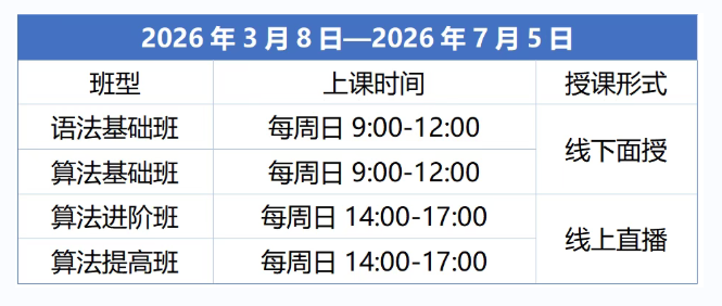 北京师范大学人工智能学院2026年春季学期信息学班课分为四大班课,分别为语法基础班、算法基础班、算法进阶班、算法提高班。本课程以C++为载体,系统讲授语法与算法,不仅教授编写程序的技能,更致力于培养学生的计算思维、逻辑分析与系统建模能力。北京高考在线团队整理了相关内容,分享给大家。