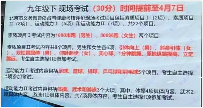 网传2026年北京中考体育现场考试时间提前,咱家孩子的学校通知了吗?具体情况随北京高考在线团队一起来了解!