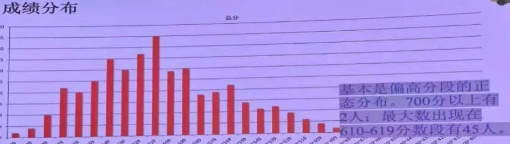 分数峰值区间:610–619分,共45人整体呈标准正态分布,且明显向高分段倾斜。在满分750分的高考计分模式下,这是相当亮眼的成绩。