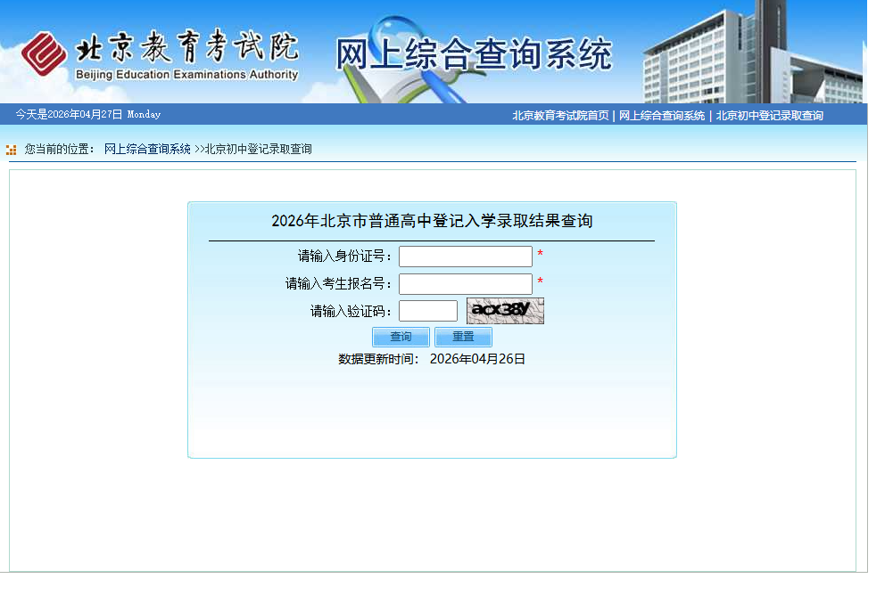 2026年北京市普通高中登记入学录取结果查询入口