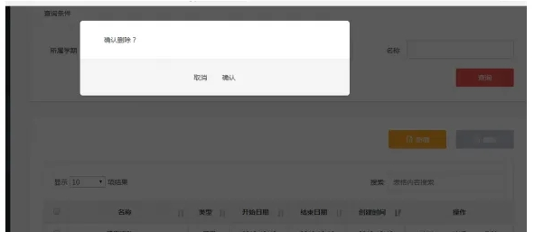 查询:选择所属学期下拉框,选择级别和名称等条件,点击【查询】按钮,查询出符合条件的数据记录。