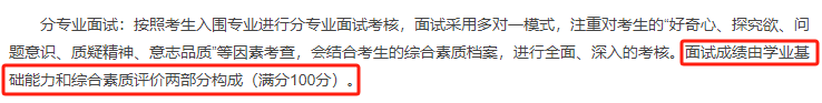 南开、华中科技等院校面试成绩根据面试情况和考生综合素质档案综合得出。也就是说,综合素质评价在这些院校的面试中会占有一定分值,因此考生及家长应重视每年的综合素质评价填写,及早在各方面为高考升学做好准备。