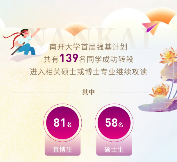 据南开大学官方发布数据,2020级首届强基生共有139名成功转段。其中直博生81人,硕士生58人。