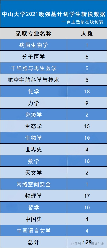 由此来看,中山大学强基计划的转段培养,无论是转段率还是选择专业方向都是非常不错的。以下是各专业转段人数: