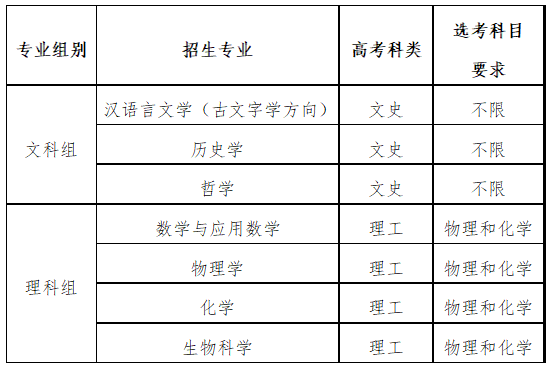 北京师范大学2025强基计划招生专业及选考科目要求如下: