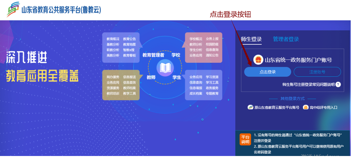 2.通过山东省统一政务服务门户账号首次登录山东省教育公共服务平台