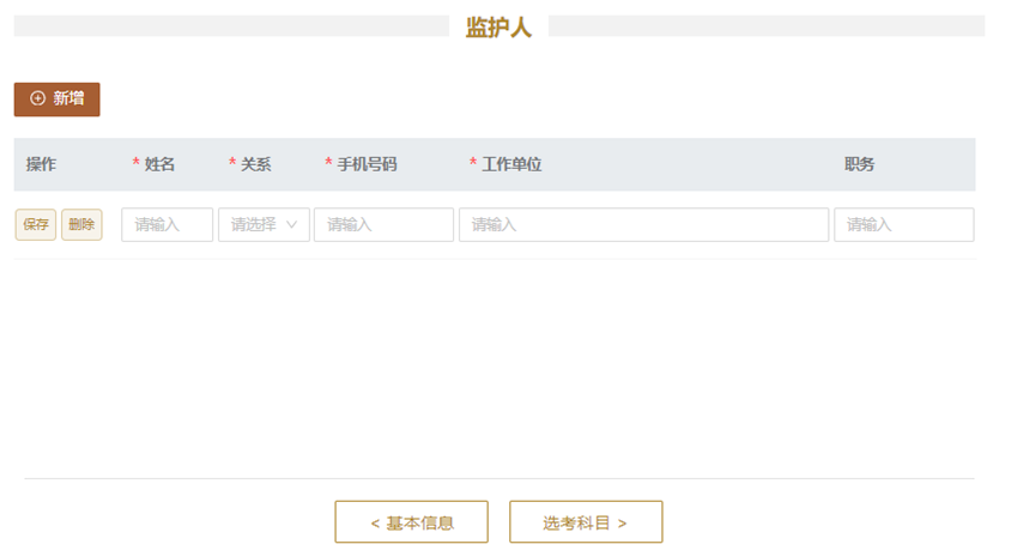 4.【监护人】模块中,需填写父亲、母亲等家庭成员信息。