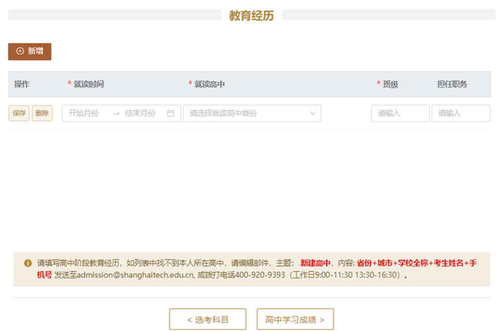 6.【教育经历】模块中,仅需填写高中阶段教育经历。