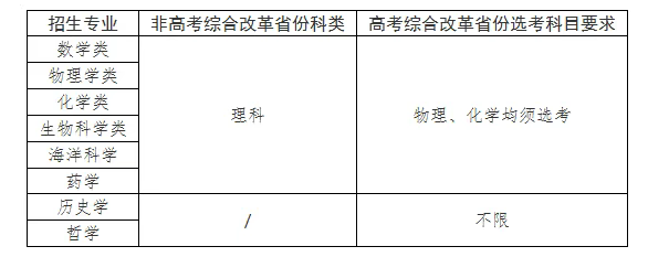 2025年厦门大学在数学类、物理学类、化学类、生物科学类、海洋科学、药学、历史学、哲学等专业进行招生。具体招生专业、招生科类及选考科目要求如下: