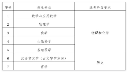 华中科技大学招生专业为:数学与应用数学、物理学、化学、生物科学、基础医学、汉语言文学(古文字学方向)、哲学,选考科目要求如下: