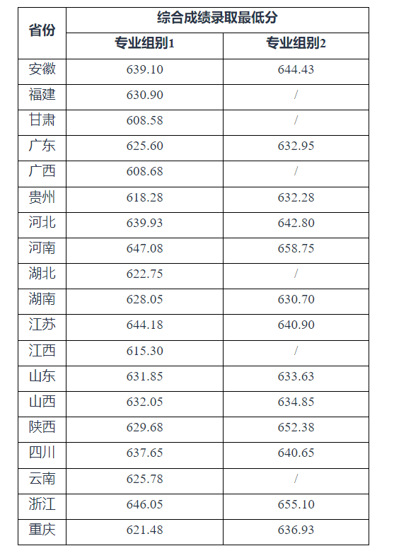综合成绩相同者,依次比较高考成绩总分、数学成绩、外语成绩、语文成绩。录取时,根据拟录考生专业志愿情况,可对各省份的分专业计划进行适当调整。