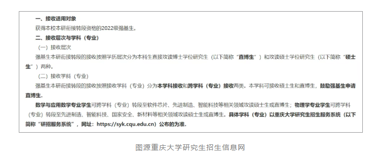 根据《重庆大学接收本校2022级强基计划学生转段攻读2026年研究生章程》可以了解到:
