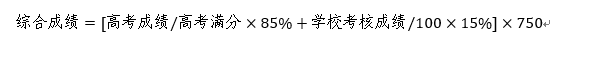 综合成绩总分750分,由高考成绩和学校考核成绩两部分组成,折算办法如下: