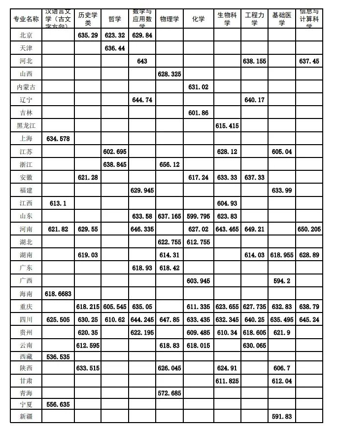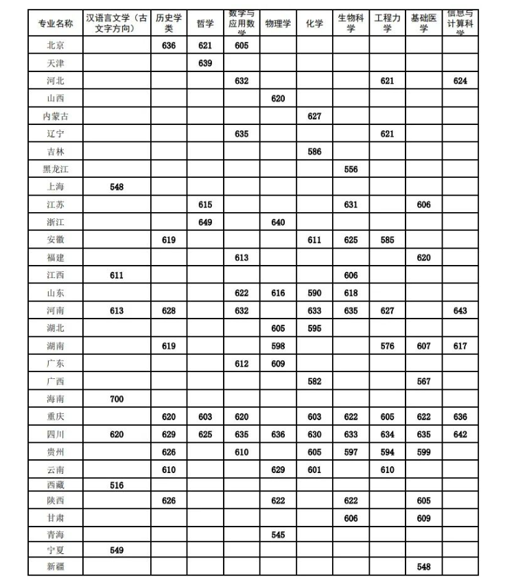 *注:以上考生高考成绩均需超过所在省市一本线/特招线。