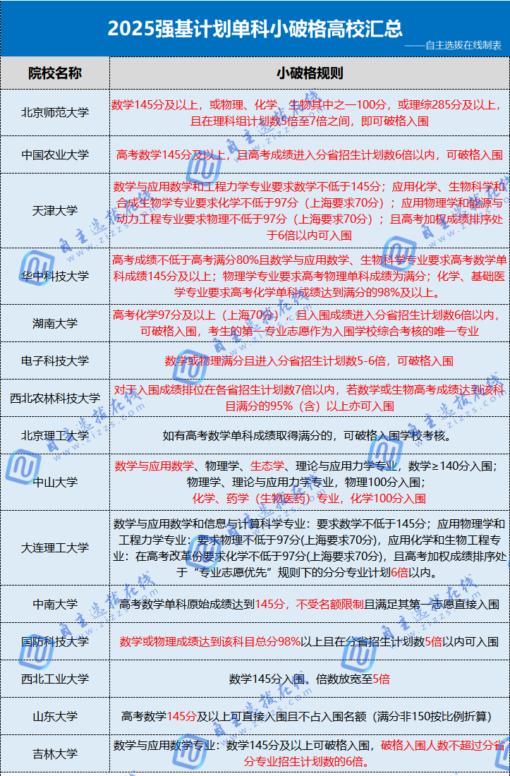 以下是2025年各高校强基单科“小破格”入围规则汇总,供大家进行参考: