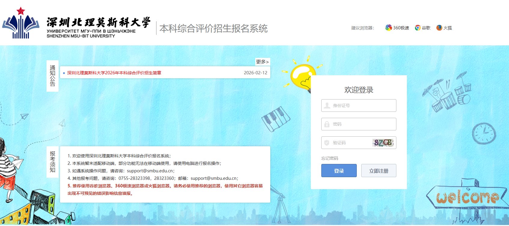 1. 欢迎使用深圳北理莫斯科大学本科综合评价报名系统;