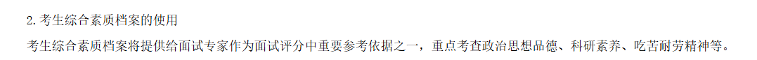 华南理工大学明确说明:将提供给面试专家作为面试评分中重要参考依据之一,重点考查政治思想品德、科研素养、吃苦耐劳精神等。