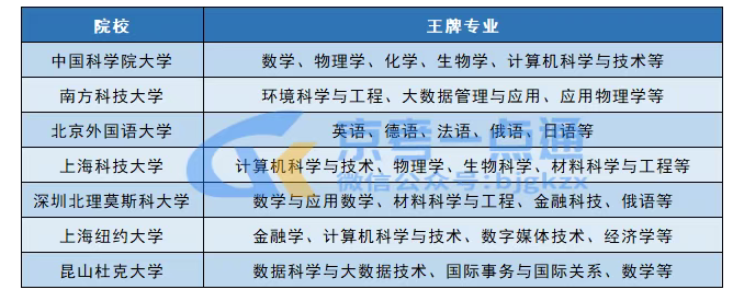 各院校王牌专业如下: