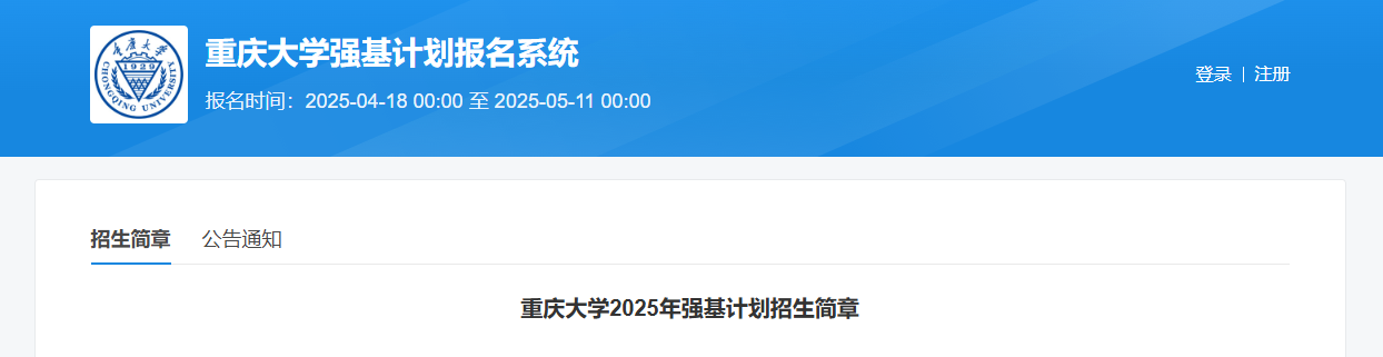 重庆大学强基计划报名入口(复制至浏览器打开):https://bm.chsi.com.cn/jcxkzs/sch/10730