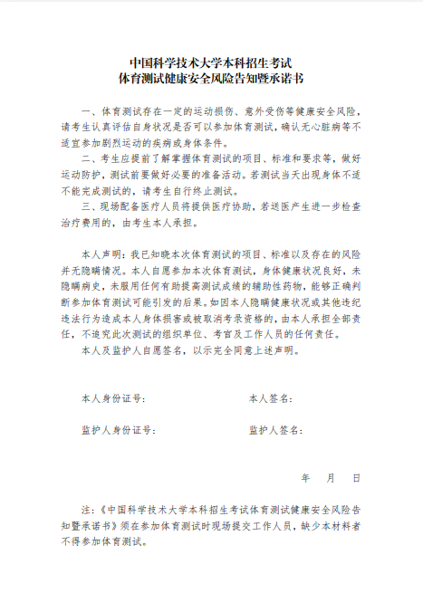 2、中国科学技术大学本科招生考试体育测试健康安全风险告知暨承诺书.pdf