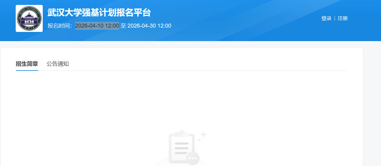 武汉大学是中华人民共和国教育部直属的综合性全国重点大学,位列国家“双一流”“985工程”“211工程”建设高校,武汉大学强基计划入围采用高考成绩入围模式。武汉大学2026强基计划已经公布,2026-04-10日12:00武汉大学2026强基计划报名入口开通,武汉大学2026强基计划报名入口在哪?考生在哪报名??北京高考在线团队特意整理了相关内容,具体信息如下:
