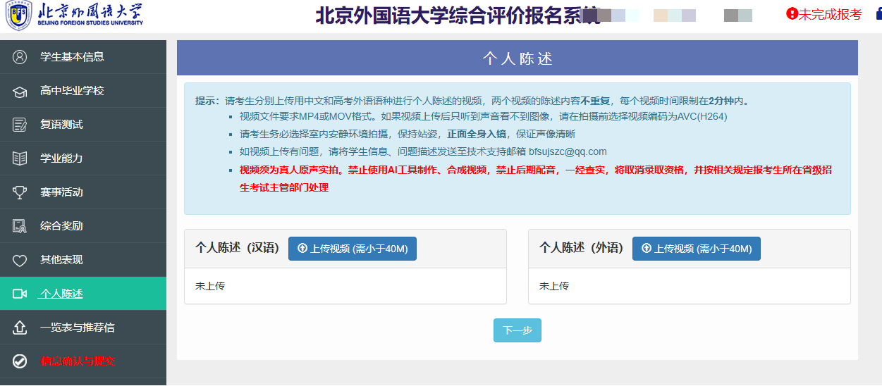 第一步,填写基本信息、学习经历,上传个人证件照等;