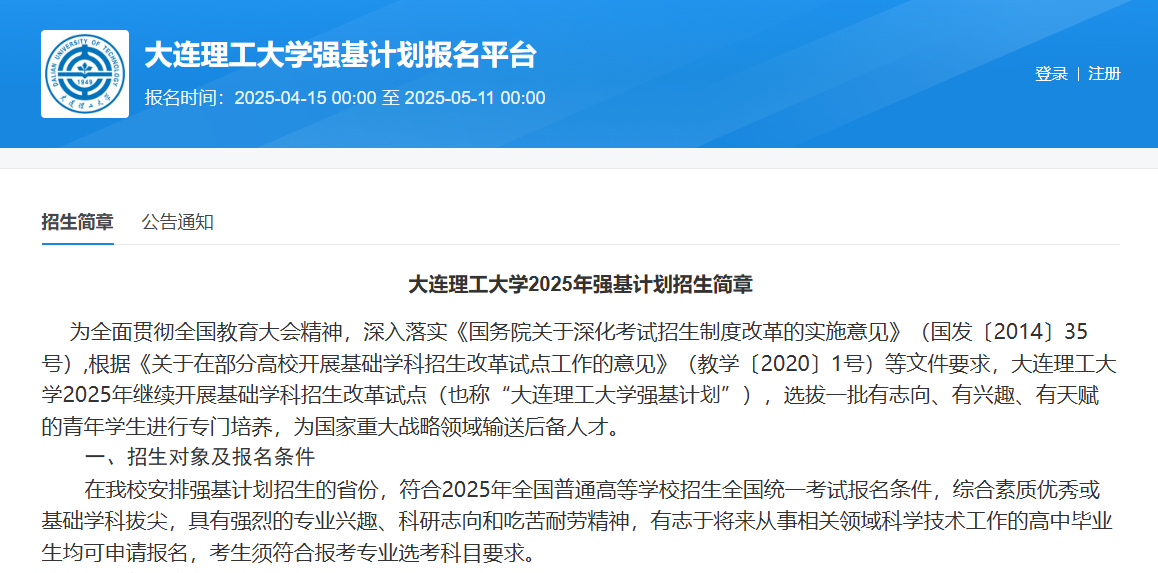 大连理工大学2026强基计划报名入口在哪?强基报名需要注意什么?