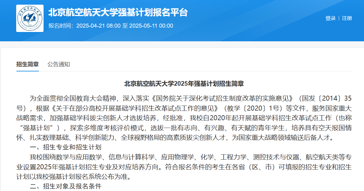 北京航空航天大学2026强基计划报名系统入口