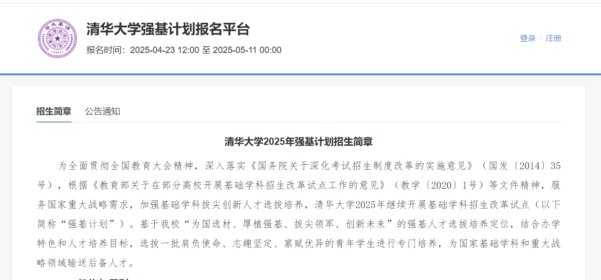 清华大学2026强基计划报名入口什么时候开放?考生在哪报名
